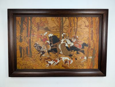 Intarsia wood panel “Hunting scene” 125×85